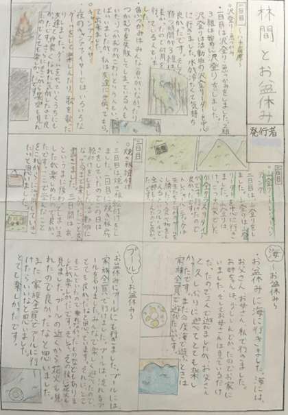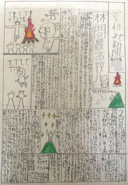 夏休みにあったこと、楽しかったしたことを、5年生が新聞にしました。「夏休みにしかできないことを体験したりチャレンジしてりしてね」と話していましたが、誌面にびっしり書かれた文章からも、そのときのワクワクやドキドキが伝わってきました。