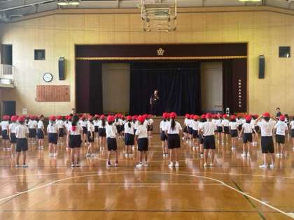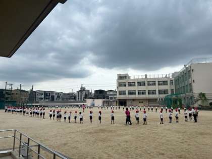 ?低学年も、先週から運動会の練習をスタートしています。2年生は体育館で、去年の経験を思い出して「今年もがんばるぞ!」という気持ちで。また1年生は運動場で、小学校生活初めての運動会に向け、輪になって並んで場所や位置の確認をしていました。かわいらしく、そしてかっこいいダンスを今から楽しみにしていてくださいね。