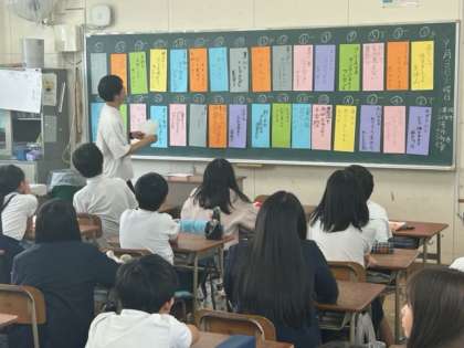 ?6年生が俳句の授業をしていました。生活の中で発見したことや季節を感じた出来事などから題材を選び、発見や感動を五・七・五の十七音で表した俳句。クラスみんなの作品が黒板にズラリと並びました。