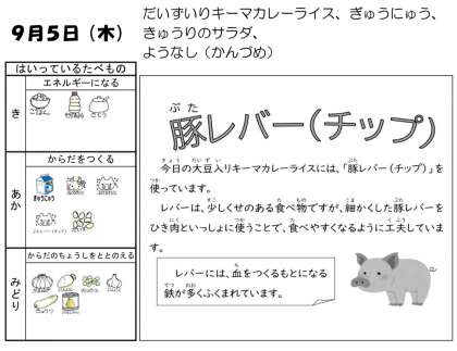 9月5日の給食です。