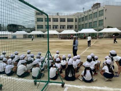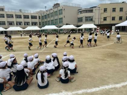 運動会を日曜日に控え、今日は各学年とも最後の練習がありました。細かい動きを確認したり、これまで頑張ってきたことを振り返ったり。また、お隣の学年どうしでお互いの演技を見合いっこする場面も。「1年生、すごかった」「めっちゃ笑顔やったねぇ」と、2年生のお姉さん、お兄さんがにこにこと拍手を送っていました。