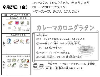 9月27日の給食です。
