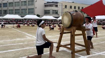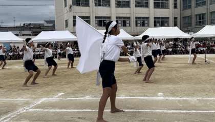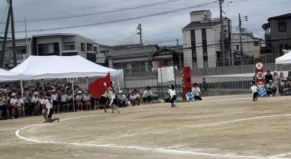 プログラム2番は「応援合戦」です。何日も何日も放課後の時間を使って、団長さんを中心によくまとまって積み重ねてきたことをすべて発揮しました。新たな試みとして行ったウェーブや競技中の応援も、運動会を盛り上げていました。