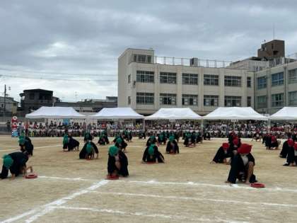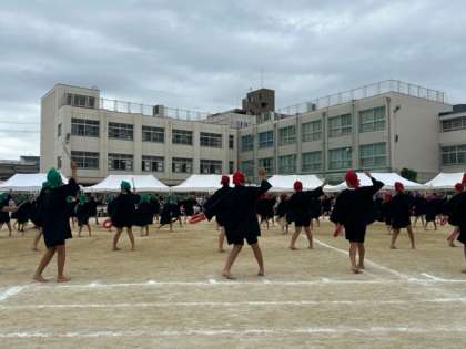 ?プログラム6番は5年生団体演技「みーんな ちむどんどん」です。めざしたのは、見た人みんなが「ちむどんどん」するような演技。ちむどんどんとは、わくわくどきどきすることです。5年生みんなで心をひとつにして、力強い声、音、演技を、見ている人たちの心に届けました。