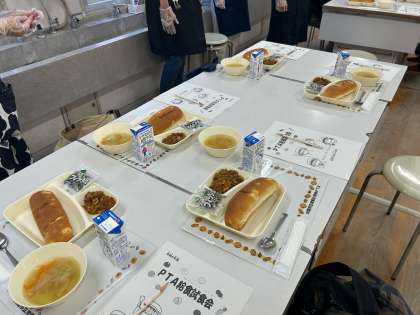 子ども達がいつも食べている給食を保護者の方にも味わっていただく機会として、PTA給食試食会がありました。