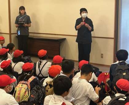 退館式がありました。すてきな旅館で過ごさせていただいた、感謝の気持ちを伝えた子どもたち。
