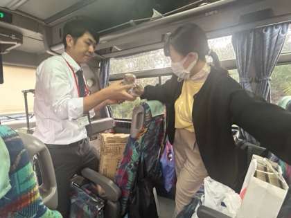 鳥羽水族館に着きました。車内で、PTAからいただいたお茶を配ってもらった子どもたち。「やった!麦茶大好き」と喜んでいました。水族館内での説明を担任の先生から聞いて、間もなく入館です。