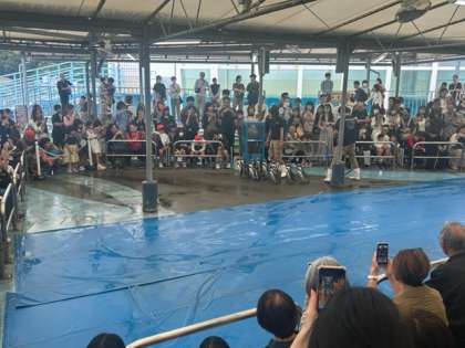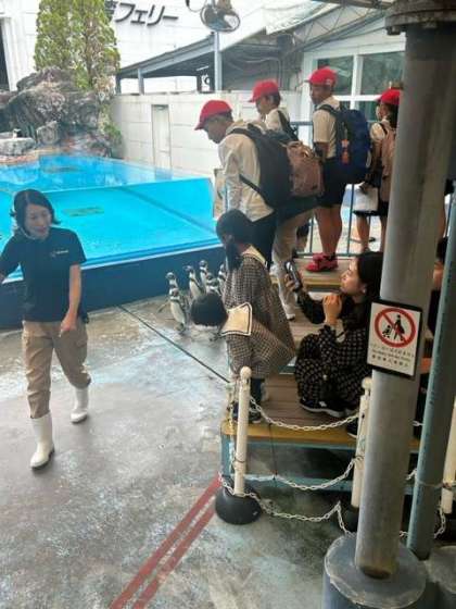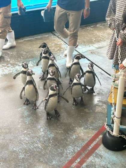 かわいいペンギンたちの登場に、会場は「かわいいーっ」「みんなちゃんと並んで歩いてる!」と声があがっていました。ポーズもとって、はい、チーズ。ほほえましい気持ちになる時間でした。