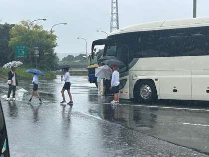 嬉野パーキングエリアを出ました。外は雨。持ってきた折り畳み傘の出番です。足元に気をつけて、1回めのトイレ休憩を終えました。