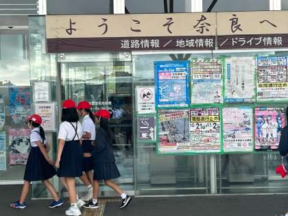 道の駅「針テラス」です。雨は止んで、少し陽射しも出てきました。今度は傘無しで、2回めのトイレ休憩を終えました。みんな元気です。