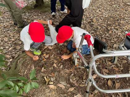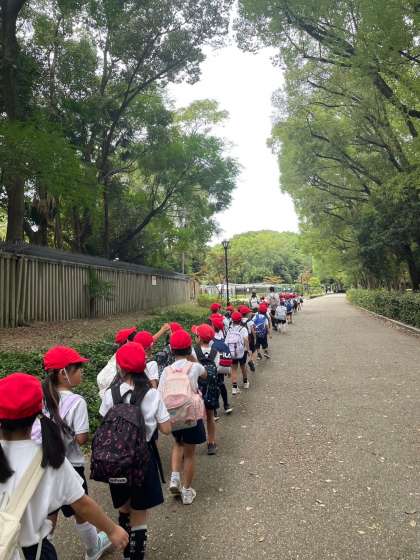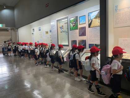 自然史博物館ではナウマンゾウの足あとに興味津々。