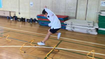 ミニハードルを跳んだり、トンネルをくぐったり、平均台を渡ったりたくさん身体を動かしました。「ドキドキしたけど、上手に平均台が渡れたよ!」「トンネルめっちゃ早くくぐれた!」と色んな動きにチャレンジして、達成感を味わえた子どもたちでした。