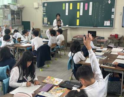 2年生の国語の時間。この日は「かたかなをつかおう」の学習でした。一枚のある手紙に書かれて文章をよ〜く見ると、「あ!これ、かたかな使ったほうがいいよねぇ」と、子どもたちは、すぐに発見!かたかなを使うことばを、次々と見つけていきます。じゃあ、どんな風に仲間分けできるかな?かたかなをつかうことばのルールについて考え、最後はタブレットで練習問題に取り組みました。