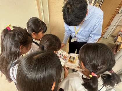 その日の休み時間、「トントントン」と校長室をノックする音。「はーい、どうしたのかな」とドアを開けると、「見て見て、この本!校長先生がお話してくれた人が載ってるよ〜」と、3年生の子たちが持ってきてくれたのです。そこから、その絵本を開いて一緒に見ながら、プチ鑑賞会をしました。