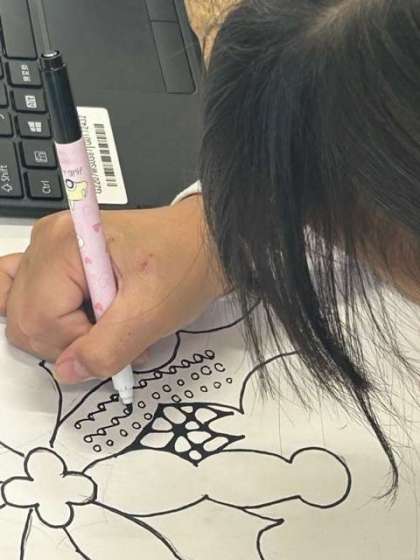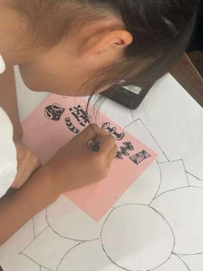 そこから、「こんな花にしたいな」という思いをもって描き進めると、時間はあっという間に過ぎていきました。ときには友だちからのアドバイスをきっかけに、表したいこと、描きたい絵を追求していきました。