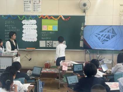 この日、?4年生が取り組んでいたのは「まぼろしの花」。まぼろしって、どんな感じ?と先生が尋ねると「本当は無いかもしれないけど、たまーに、見える感じ」「非常に、非常に!めずらしい感じ」「何か、伝説的な・・・」と子どもたちは、それぞれが持つ、ことばのイメージを話し始めます。