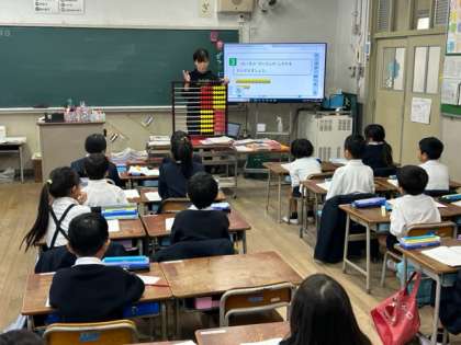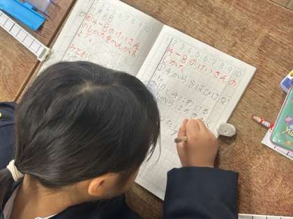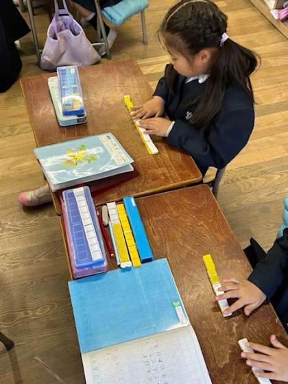 授業のはじまりに「100玉そろばん」を使って皆んなで唱えていたように、繰り返し、繰り返し、算数科で大切な「10のまとまり」で考えていくことを身につけていってほしいなと思います。