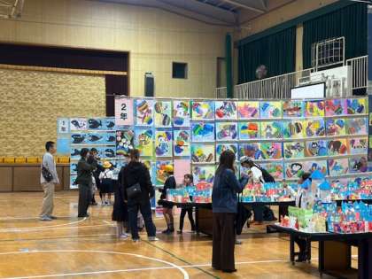 今回の作品展は、期間中に、保護者の方と子どもたちが「一緒に」鑑賞できる機会をつくりたいという思いで、木曜日と金曜日の2日間を「一緒に鑑賞していただける日」として設定させていただきました。(もちろん、保護者の方のみのご来校も大歓迎です。)本日はその初日でしたが、予想を超えるたくさんの方々の来校がありました。微笑ましい作品展保護者鑑賞になったこと、我々教職員も、幸せな気持ちをたくさん共有させてことができました。ありがとうございました。