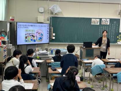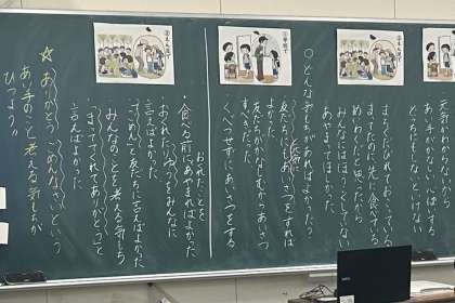 少し説明があれば、そうはならなかったのになぁ、とか、ひとことあやまりの言葉があれば、「なんだ、そういうことかと、みんなが共感したり受け止めたりもできたのになぁ」など。これらは、何も子どもたちの世界だけではありません。この日、2年生の道徳の学習の単元名は「さて、どうかな」。授業の後半、子どもたちが導いたことばに、「ありがとう、ごめんなさい」など「相手の気持ちを考えて、ちゃんと伝えることが必要」というものがありました。