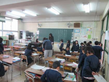 始業式が終わると、教室ではお正月の過ごし方や家族との団欒を話し合っている姿が見られました。また、お道具箱やロッカーの中を整理して、気持ち新たに3学期を始める姿も見られました。
