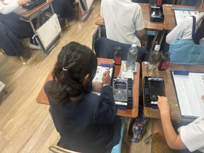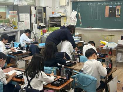 教室内に、ピーンとした空気が感じられます。3年生の書写の時間です。今までも、これから何回も書いていくであろう自分の名前。小筆であっても書くときの気持ちは同じ。心を込めて、練習していました。