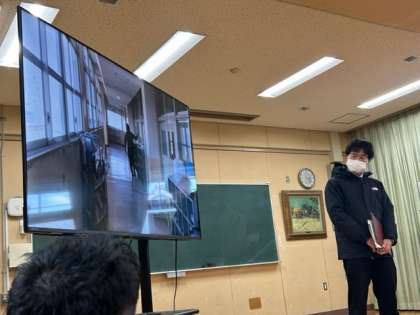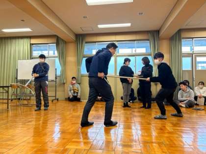 万が一不審者が学校に侵入してきたときを想定し、その対応について実習後、東住吉警察署の方から本日の我々の対応についての振り返りのお話やアドバイス、最後には、さすまたの有効な活用の仕方について指導いただきました。