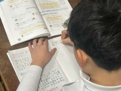 今日は「わからない数を□にしてひき算をしよう」ということがめあてでした。授業の最後の方で入ると、今日学んだことが黒板にあり、子どもたちもノートにそれらを書き留めていました。見やすいノートづくりは、次時以降の学習が進む上で、振り返る際に役に立ちます。