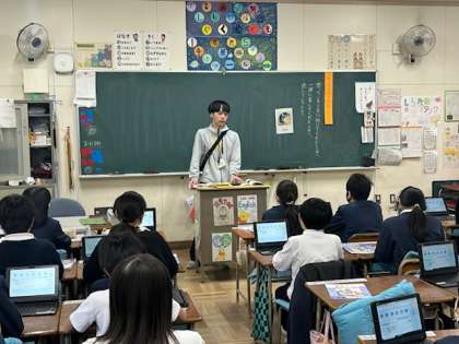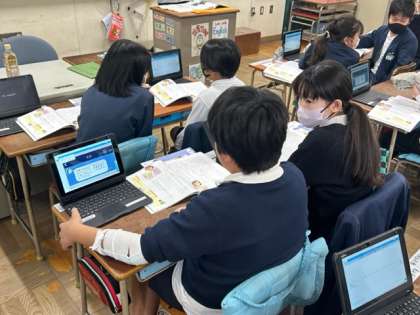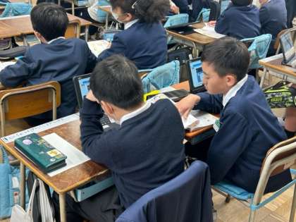 ?5年生、道徳の時間です。今回の題材は、転入してきた「あゆみ」、そのあゆみと仲よくなろうとした「みか」、それぞれの回想文で展開されています。みかが送った軽率なメールをきっかけとして、あゆみを傷付けてしまうという人間関係のトラブル。子どもたちは、隣同士で、またクラス全体で、あゆみやみかの思いについて想像したり共感したりしていきました。相手の気持ちを考えることの 大切さを、あらためて考えるよい機会になりましたね。