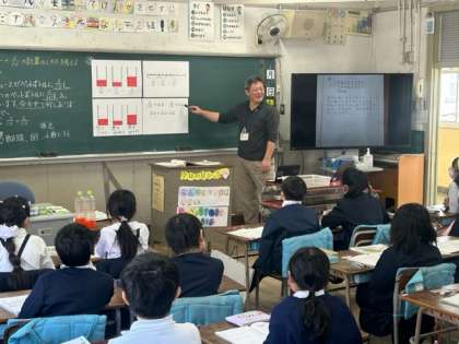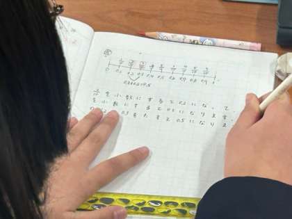 3年生の算数の時間です。子どもたちは、これまで学習してきたことをもとに、分数の足し算の計算の仕方を考えていました。図にかいたり、あるいは数直線で表したり、小数にしてみたり。「あ、そういうことか」と、ノートに自分の考えを展開し、自分のペースで答えを導き出す姿がありました。ゆっくりでいいですよ。焦らず、ひとつひとつ「わかった!できたよ」を積み重ねて行きましょうね。