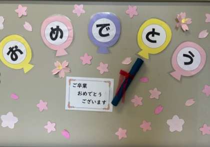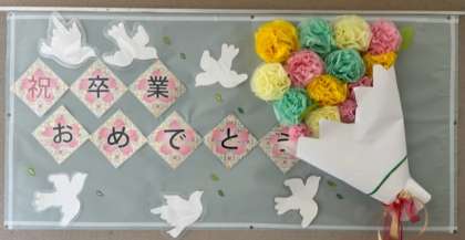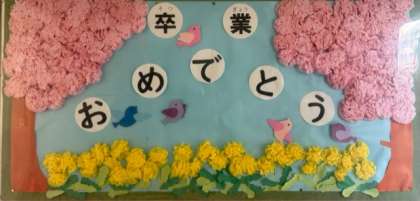 ひとつひとつの花や鳥たちに心が込められています。つくった皆んなのおめでとうの気持ち、伝わったかな。