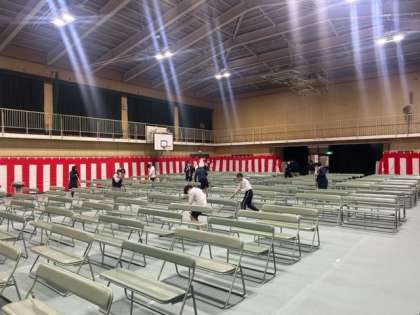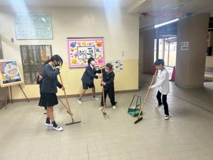 6年生が下校した後、5年生が明日に向け、チームに分かれて、せっせ、せっせと会場の準備や、玄関、教室周りの清掃をしています。