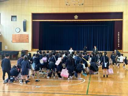 今年度のスタートにあたり、教職員スタッフ全体の皆さんや担任の先生方の紹介のあと、各学年に分かれて、今度はクラス替えの発表がありました。一人一人の名前が呼ばれ、「これまでありがとうね」「これからよろしくね」の言葉が飛び交いました。