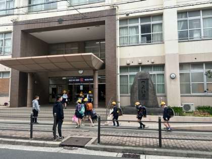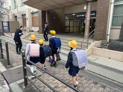 ?新学期が始まり1週間。登校してきたときに元気よく「おはようございます」と言える子がたくさん増えてきました。登校班でも、ちゃんと列になって歩いたり、高学年のお姉さん、お兄さんに手を繋いでもらったりしてうれしそうです。ふと足元を見れば桜の花びら。スタートの1週間を、玄関横や校庭の桜も、スタート1週間の子どもたちの様子を、樹の上からちゃんと見守ってくれてたんだなぁと思いました。