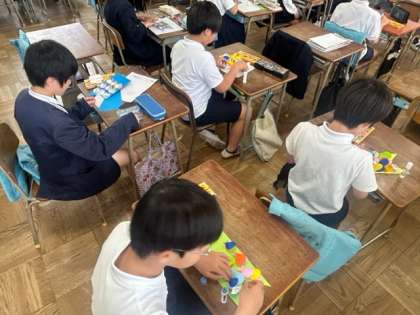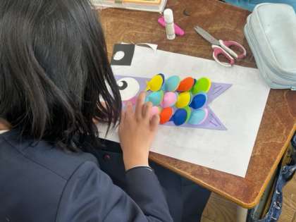 今日の委員会活動の様子です。掲示委員会がつくっていたのは5月の掲示物。こいのぼりの鱗(うろこ)の部分が、立体的になっています。それを1枚1枚丁寧に貼っていました。4月の掲示物を取り外して・・・。完成が楽しみですね。