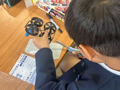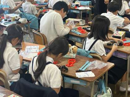 4年生の理科「風とゴムの力の働き」の学習が始まりました。この単元は、風とゴムの力で物が動く様子について追究していきます。今日は、まずは実験セットに名前を書いたり、はさみで切り取ったりしていました。「早く実験やりたいな〜」次の理科の時間も楽しみですね。