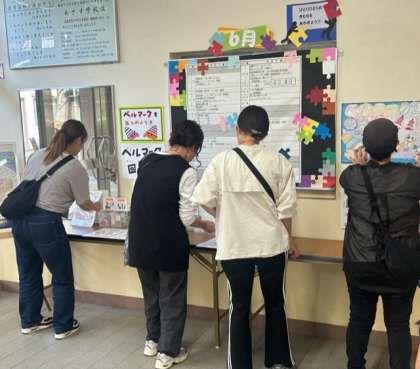 放課後、玄関ではPTAご担当の保護者の方々が集まって、ベルマーク募集の準備をしてくださっていました。ありがとうございました。