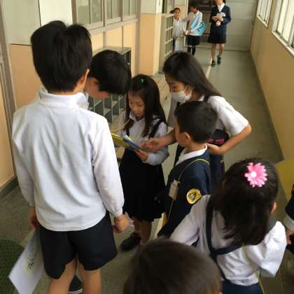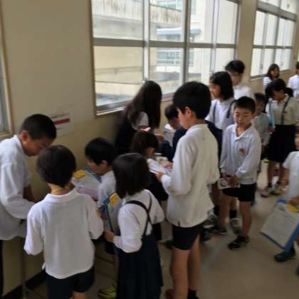 5月10日(火)1,2時間目に1年生が6年生と一緒に「がっこうたんけん」をしました。学校のいろいろな場所や教室をスタンプを押しながらまわりました。子どもたちは、職員室などへ入る時は、とても緊張した様子でしたが、だんだん慣れて楽しそうにまわっていました。1年生のみなさんは学校のようすがわかったでしょうか、6年生のみなさん、ご苦労様でした。これからも1年生のお世話をしっかりしてあげてほしいと思います。