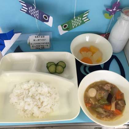 「八宝菜」の八宝とは、「たくさんの宝のような材料」という意味で、今回の八宝菜には8種類の材料を使っています。材料のひとつである「うずら卵」の除去を行うことができる個別対応献立です。