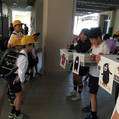 5月17日(火),18日(水),19日(木)の3日間、児童会では先日の熊本地震で被災された方々への募金活動を行っています。この活動は、PTAで募金活動をしているのを知った子どもたちが自分たちも協力したいという声で実現したものです。今日は、1日目でしたが多くの募金が集まっていました。集められたお金は、PTAの義援金募金と合わせて被災地へ届けられます。ご協力お願いいたします。