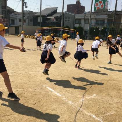 5月24日(火)朝、1.3.6年生のなわとび集会がありました。縦割り班に分かれて、大なわをしました。1年生がまだ十分に跳べないため、大波小波などのやさしい跳び方から始めていました。明日は、2.4,5年生の予定です。休み時間にも練習して、みんなで体力づくりに励んでほしいと思います。