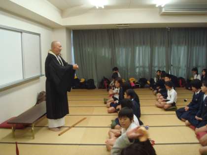 座禅体験では、現地の和尚さんに来ていただき、座禅の方法を教えてもらいました。短い時間の座禅体験でしたが、どの子も集中して取り組んでいました。