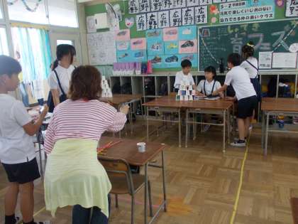 高学年の仲間入りをしてからは初めてとなる育フェスでした。子どもたちは低学年の子が困っていると「どうしたの?」と声をかけたり、お店に来た子が何をしたらいいのか迷っていると、「こうやってやんねんで〜!」と笑顔でサポートをしたりしていました。