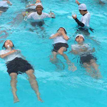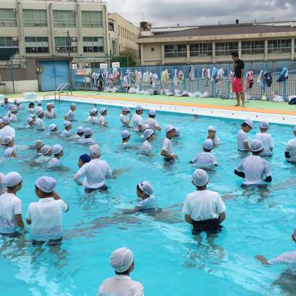 7月15日(金)6年生が着衣水泳をしました。水慣れをした後、普通にクロールや平泳ぎをしてから体操服を着て、ペットボトルなどを使ってラッコ浮きなどを体験しました。夏休みまであと少し、自分の命は自分で守ることができるよう、これからも海や川などでの水難事故に十分注意してほしいと思います。