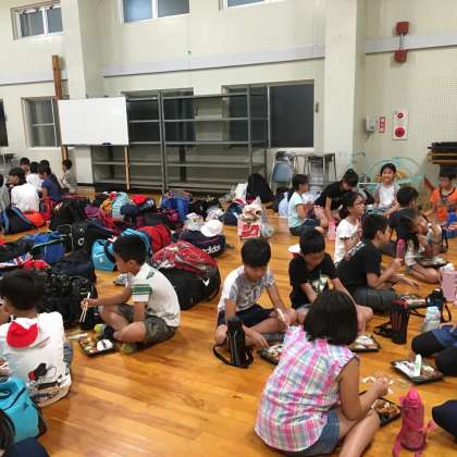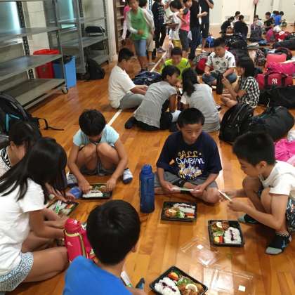 林間学習 昼食を食べています