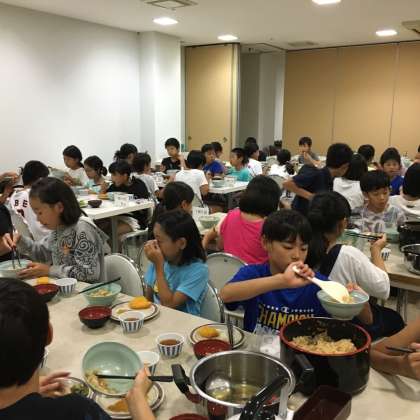 3日間の林間学習の鉢伏高原での活動を無事終えて最後の昼食を食べています。