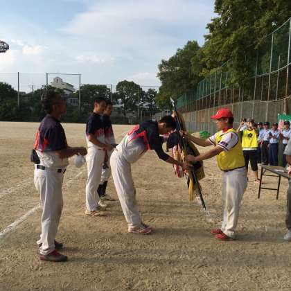 9月11日(日)白鷺公園のグランドで区PTA男子ソフトボール大会が行われました。育和小学校PTAチームは、初戦の白鷺中学校に勝つと、次に桑津小学校、中野中学校を接戦の末破り、決勝を迎えました。6対1とリードされた最終回、フォアボールをきっかけにランナーをため、集中打で大逆転をし優勝しました。次は、南ブロック大会に東住吉区代表として出場します。応援いただきました皆さん、ありがとうございました。