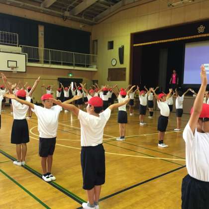 9月12日(月)6年生は、3時間目に白鷺中学校の体育の先生に来ていただいて「ラジオ体操」を教えていただきました。「ラジオ体操」をかっこよく美しく見せる3つのポイントなどを指導していただきました。子ども達は、中学校の先生の指導に少し緊張気味でしたが、しっかり腕をのばして頑張っていました。その成果を運動会でも見せてほしいと思います。