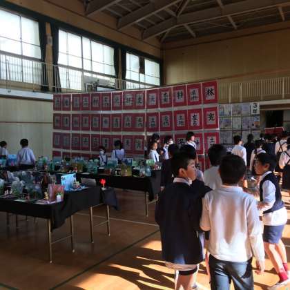 11月11日(金)子ども達の作品が講堂に勢ぞろいして鑑賞が始まりました。どの学年の作品も力作ぞろいで、子どもたちの努力の跡がうかがえるものばかりです。子ども達は、いろいろな学年の作品を見ながら口々に感想を言い合っていました。明日は、土曜参観で作品展も行っていますので、子どもたちの力作をどうぞご覧ください。