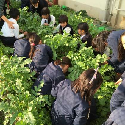 12月8日(木)6時間目に3年生は、田辺大根の収穫を行いました。学習園で育った大根の中にはとても大きいものもあり、子ども達はとても驚いていました。抜いた大根は、新聞紙にくるんでおうちに持って帰ります。葉っぱも食べられますのでおうちで料理してあげてほしいと思います。さて、みんなで育てた大根はどんな味がするでしょうか?