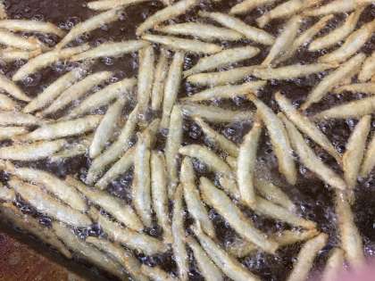 「きびなごてんぷら」は、今回はサクッとした衣の食感を味わうためにタレをかけていません。